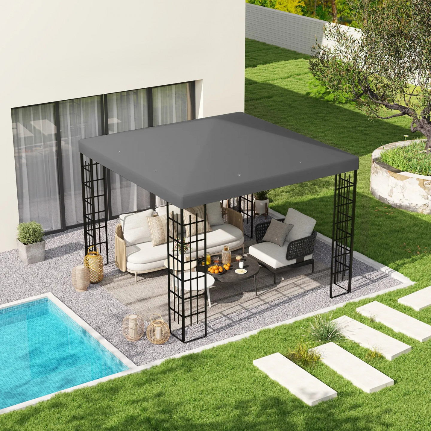 Náhradní střecha pro zahradní altán 3 x 3 m | tmavě šedá