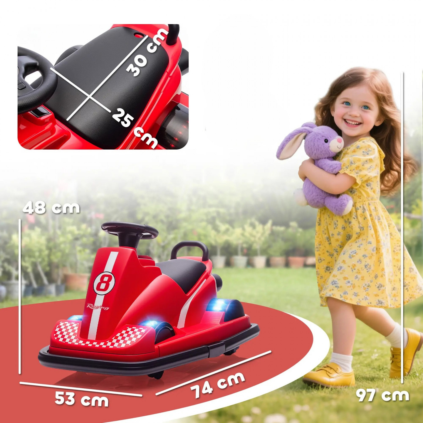 - Vybaveno dvěma motory pro otáčení o 360°, které zaručují zábavu při jízdě.