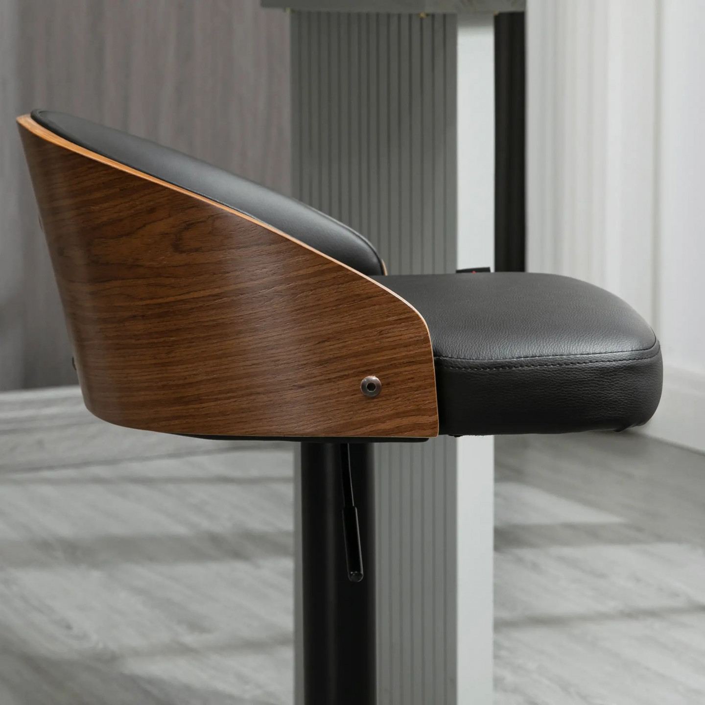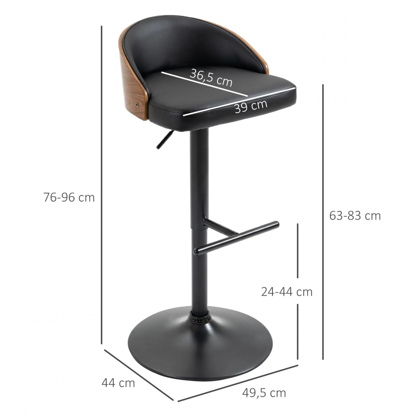 Tyto elegantní barové židle dodají šmrnc každému domácímu baru. Měkká umělá kůže je vysoce kvalitní a dodává se v jedinečném vzhledu. Obě sedadla jsou vyplněna měkkou pěnou a mají pevná dřevěná opěradla. Rám je vyroben z kovu a má velkou kulatou základnu pro bezpečné postavení. Další pohodlí poskytuje opěrka na nohy.