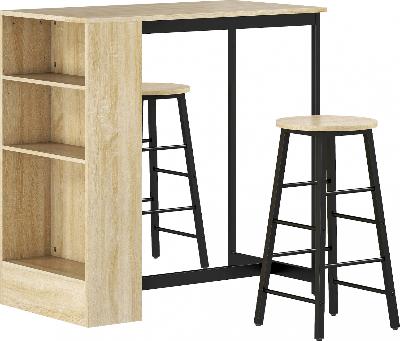 - Třídílná sada barového stolu obsahuje barový stůl a dvě odpovídající stoličky.