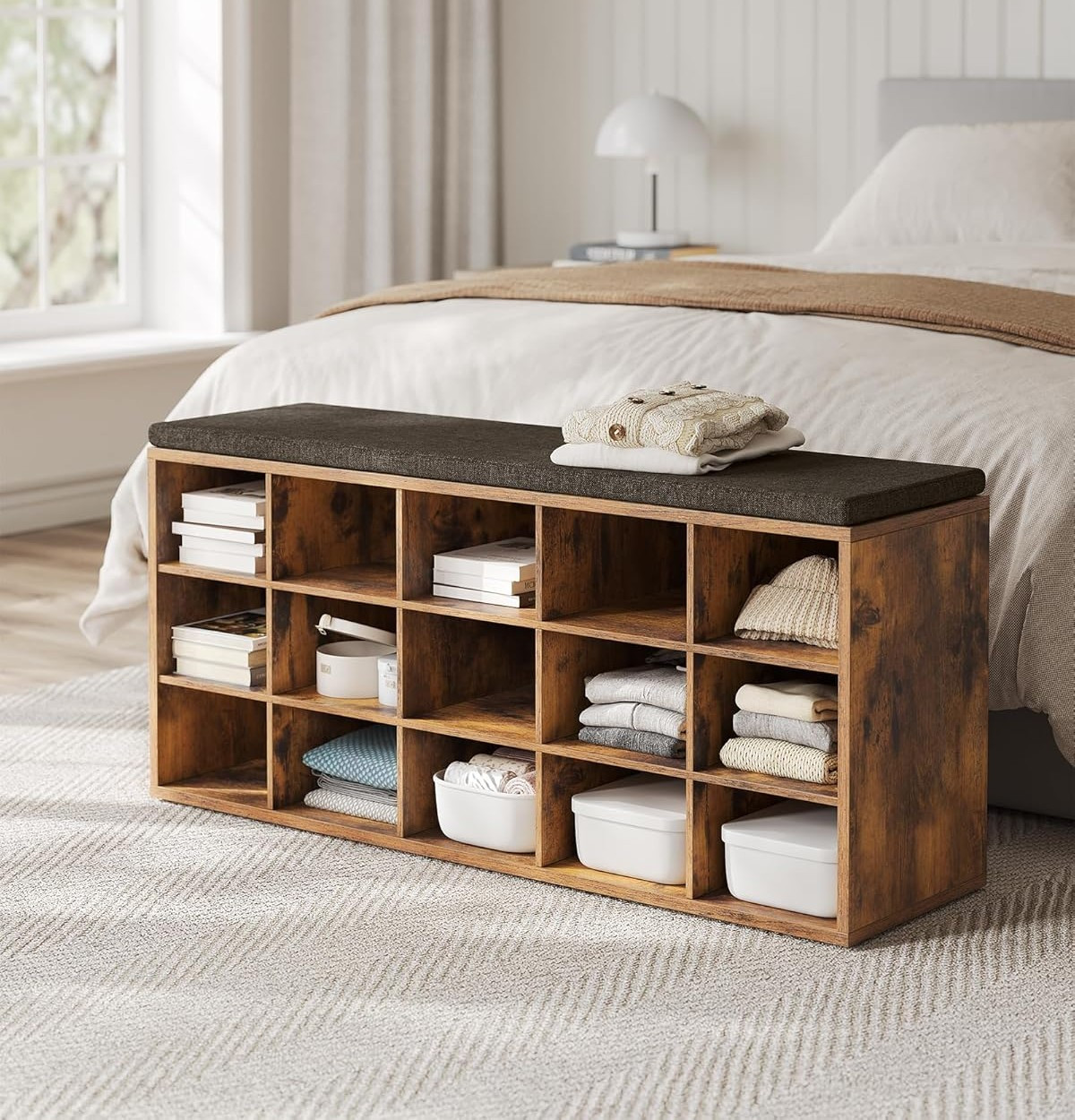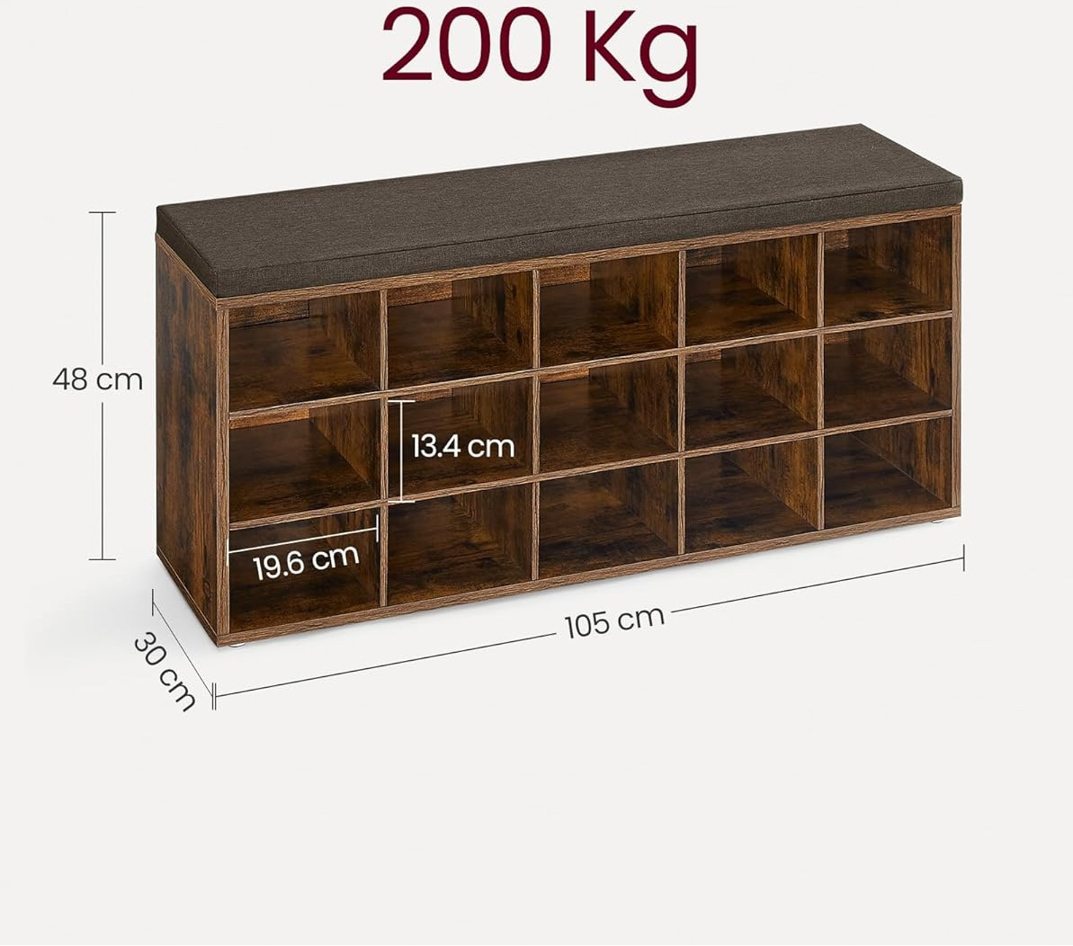Botník s lavicí 30 x 105 x 48cm | rustikálně hnědý