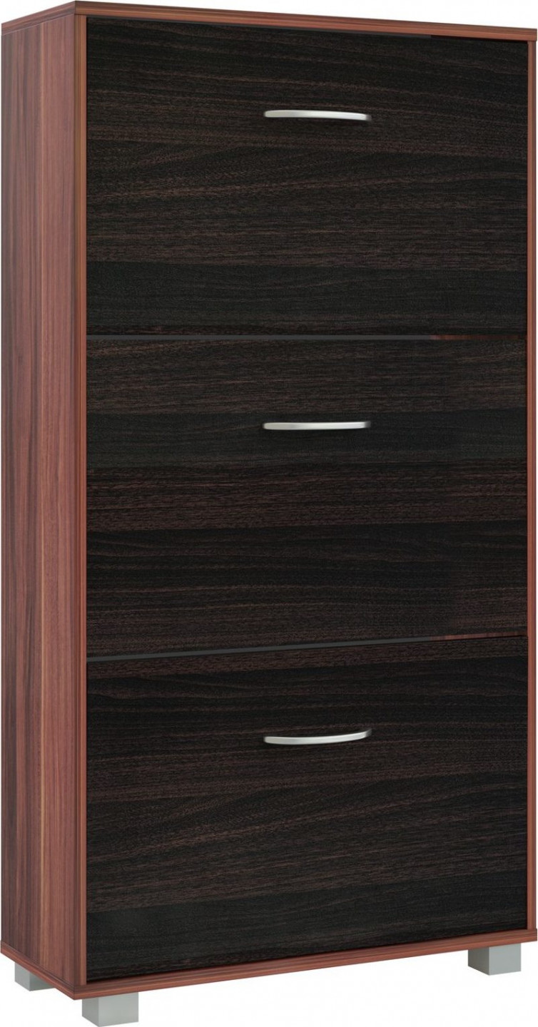 Už nevíte, co s botami? Pak je tento botník pro vás ideální. Přesvědčí Vás moderním designem, prostorově úspornou velikostí a velmi prostorným interiérem. Tři velké police s rukojetí v hliníkovém vhledu - dostatek místa pro všechny vaše boty. Ať už se jedná o lodičky, velké tenisky nebo dokonce kotníkové boty. Díky nastavitelným a odnímatelným přepážkám v každé klapce můžete umístit všechny své oblíbené boty až do velikosti 45. Vzhledem k svému nadčasovému, modernímu designu botník dokonale zapadne do stávajících místností - chodba, předsíň, atd. Díky hloubce 24 cm je botník dostatečně úzký, aby se vešel i do malé chodby. Součástí dodávky je i pojistka proti převrácení, která zajišťuje větší stabilitu při plném zatížení.