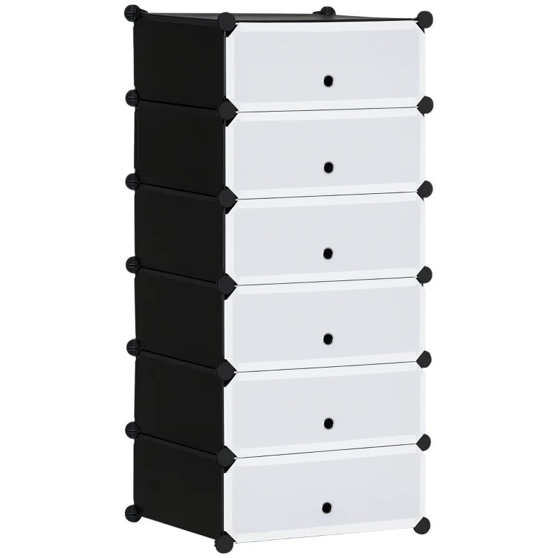 Už vás nebaví vaše boty sedět otevřené a sbírat prach? Tento modulární policový systém je ideálním řešením skladování obuvi. Boxy lze postavit jednotlivě a bezpečně je stohovat na sebe, aby se snadno vešly do každé místnosti. Kapacita 6 kostek poskytuje dostatek prostoru pro uložení hraček, doplňků, oblečení, bot a dalších věcí a udržení pořádku ve vašem domě. Tento botník je praktickým a chytrým úložným řešením.