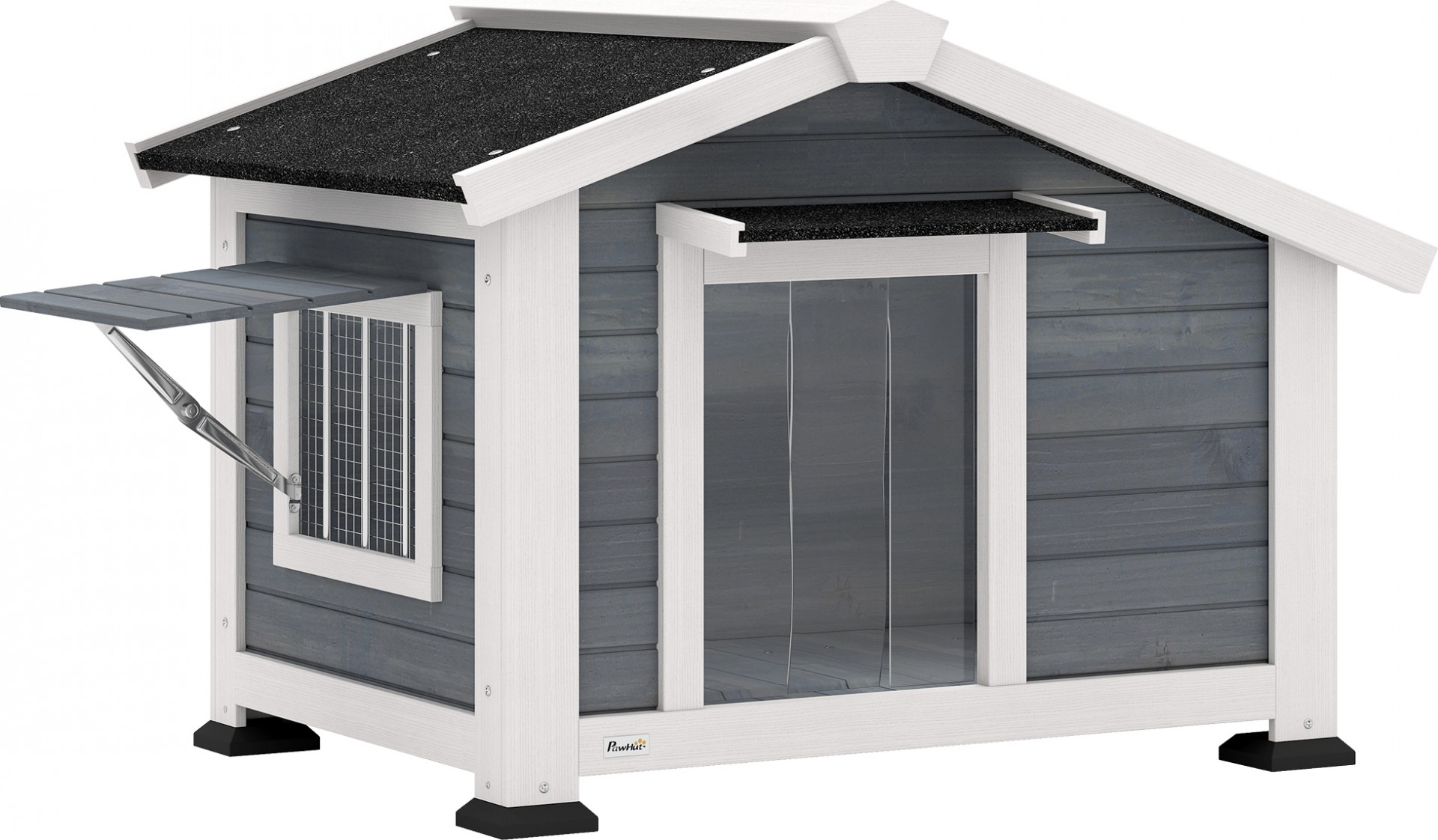 Máte obavy o pohodlí svého psa venku? Nepředvídatelné počasí a mokrá půda mohou ze zahrady vašeho čtyřnohého přítele udělat zdroj stresu. Tento psí domek nabízí skutečné útočiště. Díky asfaltové střeše odolné proti povětrnostním vlivům a 5 cm zvýšené podlaze zůstane váš mazlíček v suchu a chráněn. Okno ze síťoviny poskytuje vzdušný výhled a proměňuje tuto venkovní psí boudu v bezpečné a šťastné útočiště.