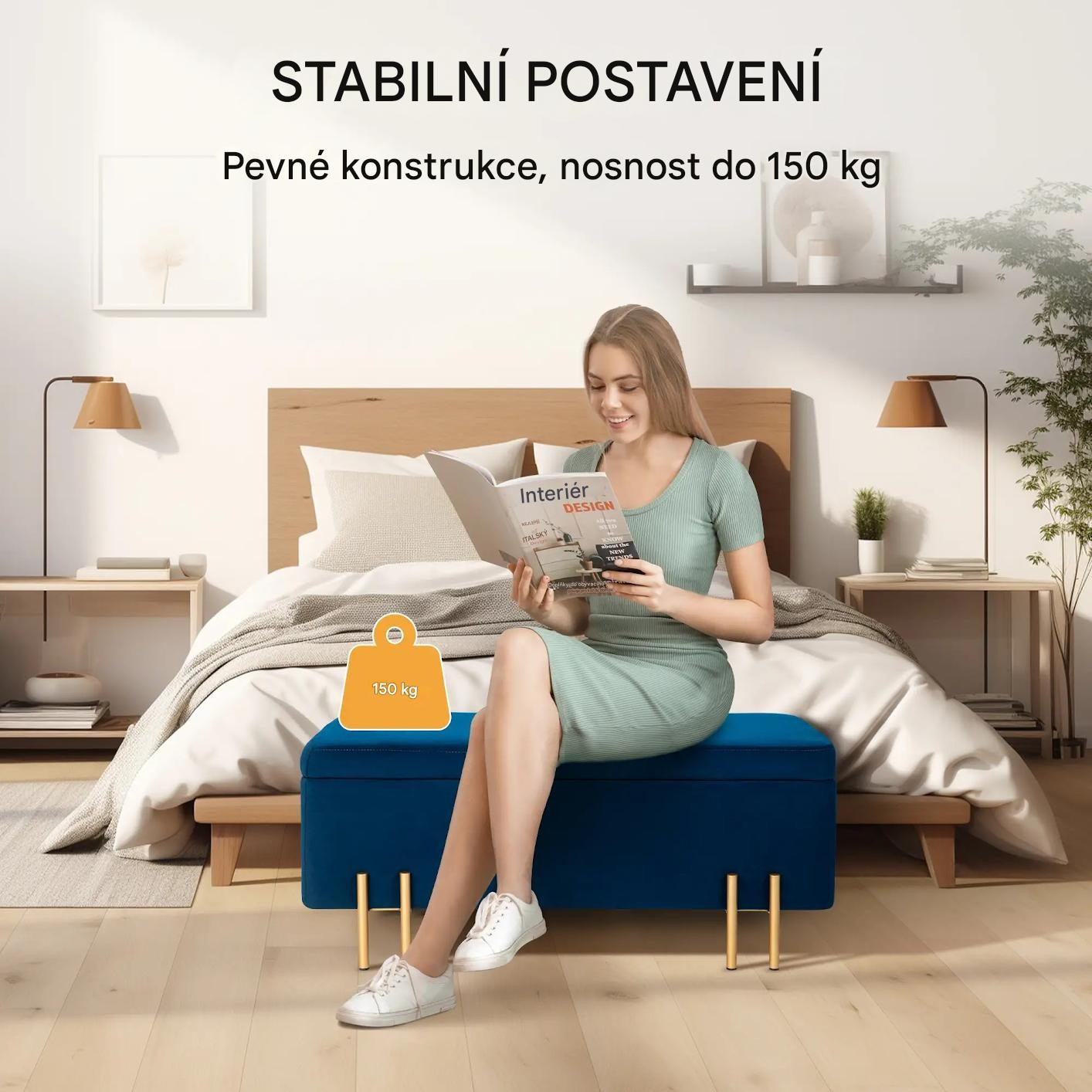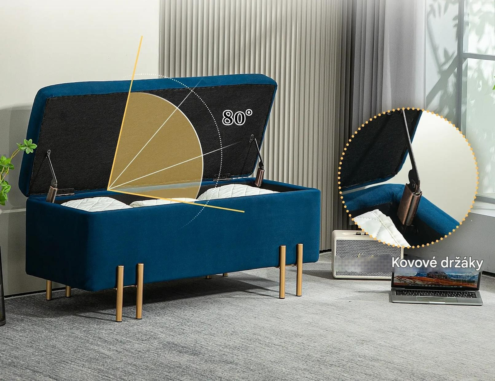 Čalouněná lavice s úložným prostorem 100 x 40 x 42 cm | tmavě modrá