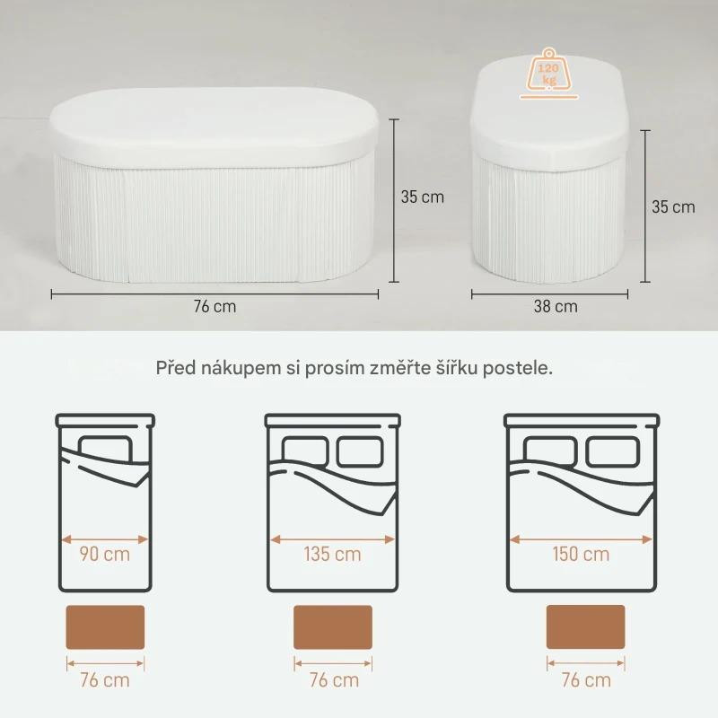 Skládací čalouněná lavice 76 x 38 x 35 cm | bílá