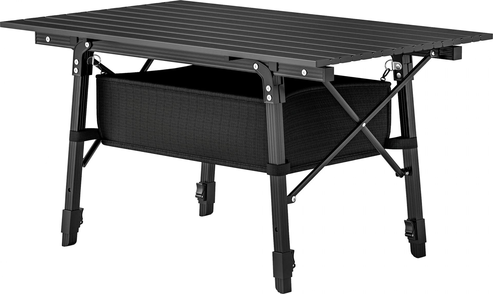 Objevte piknikový stůl: váš všestranný společník do přírody. Je vybaven velkým odnímatelným košem z tkaniny 600D Oxford a jeho výšku lze nastavit od 45 do 66 cm, aby vyhovoval každému pohodlí. Lehký a stabilní, ideální jako zahradní, bivakovací nebo kempingový stůl. Jednoduše jej uložte do přiložené přenosné tašky a vyrazte za dobrodružstvím!