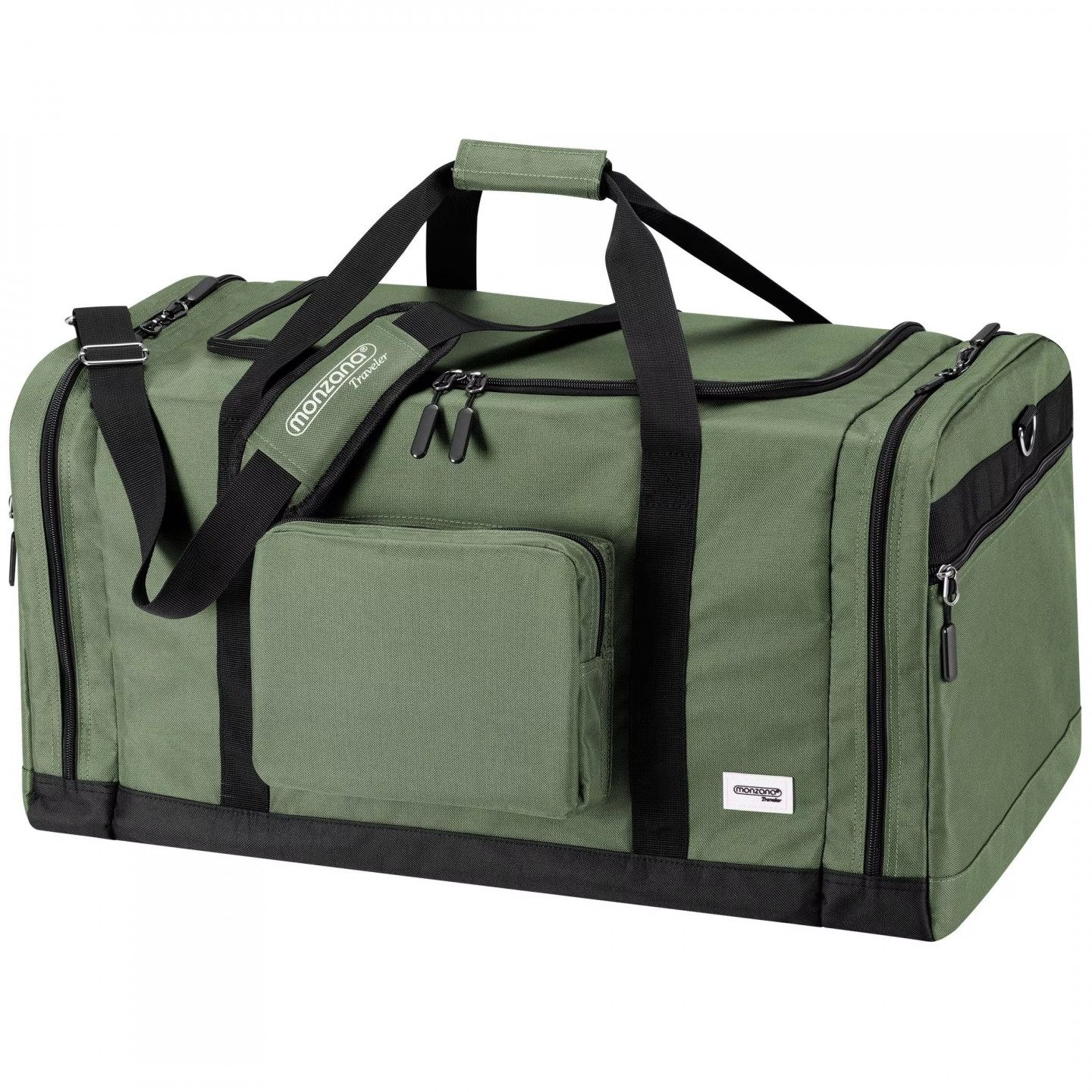 Tato velká cestovní taška pojme vše, co potřebujete! Ramenní popruh s polstrovanou ramenní vycpávkou a dvěma robustními karabinami je nastavitelný a odnímatelný. Dva popruhy na tašce jsou pevné a lze je spojit suchým zipem.