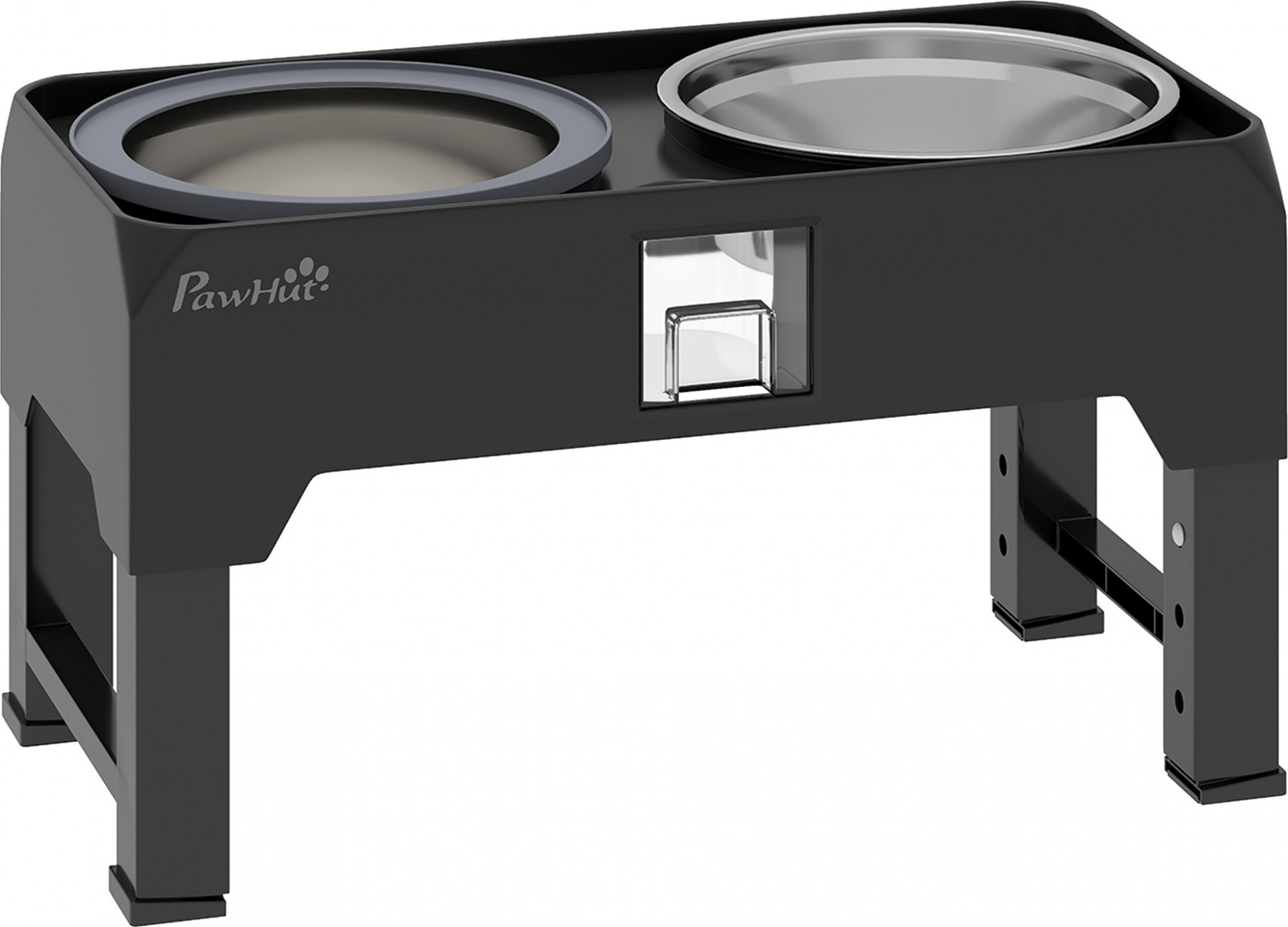 • Tato krmicí stanice pro psy obsahuje 1,2litrovou misku na krmivo a 2litrovou misku na vodu.
