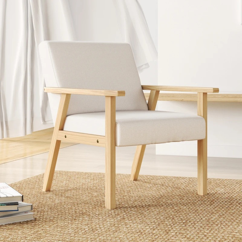 Toto křeslo je stylovým doplňkem, ať už jako akcentní křeslo nebo v kombinaci s dalšími kusy nábytku. Rám z masivního borovicového dřeva je vyroben se širokým sedákem, který nabízí dostatek prostoru. Čtyři nohy zajišťují stálou rovnováhu a stabilitu. Moderní akcentové křeslo je dodáváno se dvěma silně polstrovanými polštáři s potahy ve vzhledu lnu. Materiál se snadno čistí a je odolný.