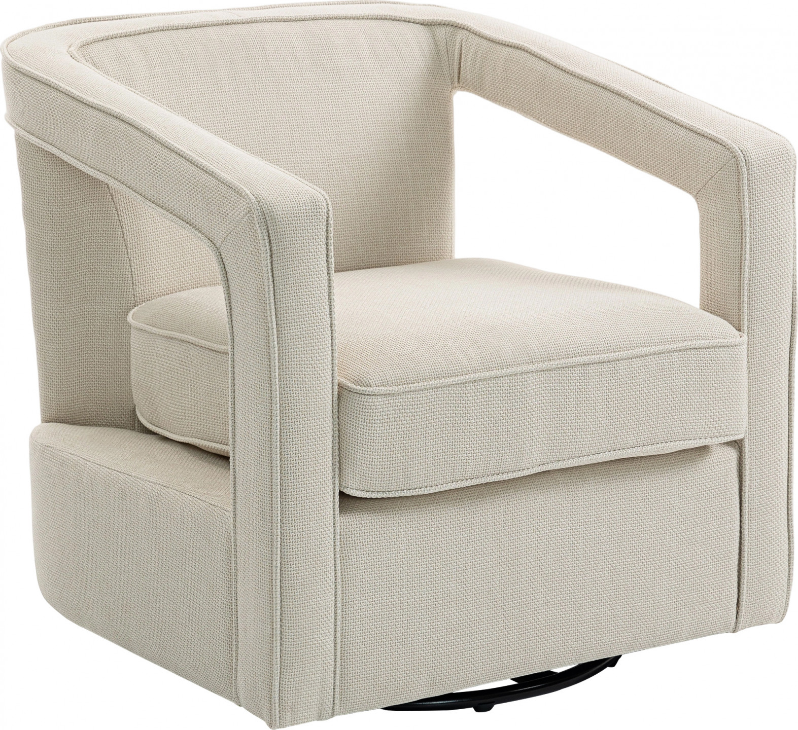 Objevte pohodlí akcentového křesla s jednodílným opěradlem a područkami, které se dokonale přizpůsobí vašemu tělu, a širokým sedákem 55 cm pro uvolněné lenošení. Těšte se na 360° otočnou základnu, která vám umožní bez námahy se otočit jakýmkoli směrem, zatímco vzdušná látka připomínající len zajistí příjemný chládek. Čalouněné křeslo je stylovým doplňkem každé moderní domácnosti!