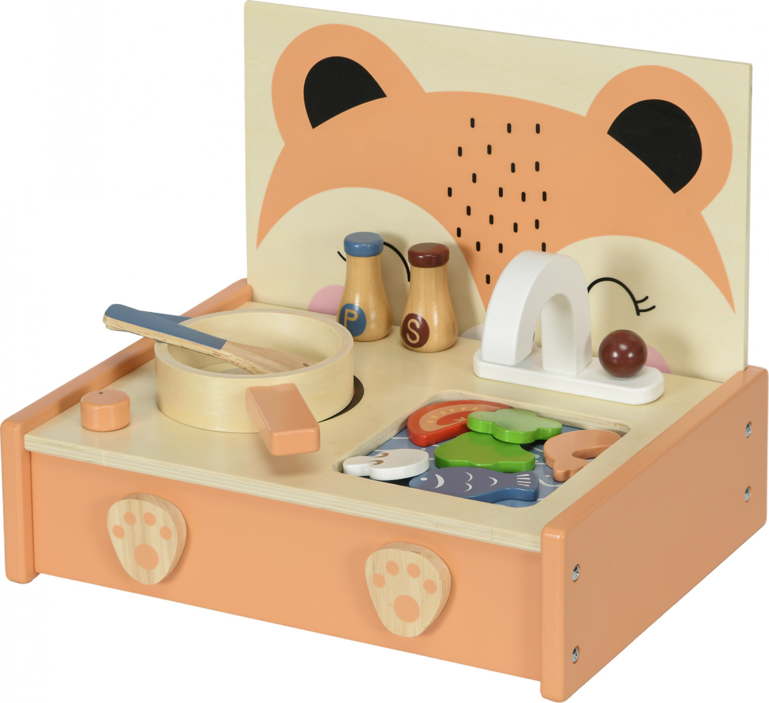 •  Roztomilý vzor lišky na dětské dřevěné kuchyňce poskytuje ještě více zábavy