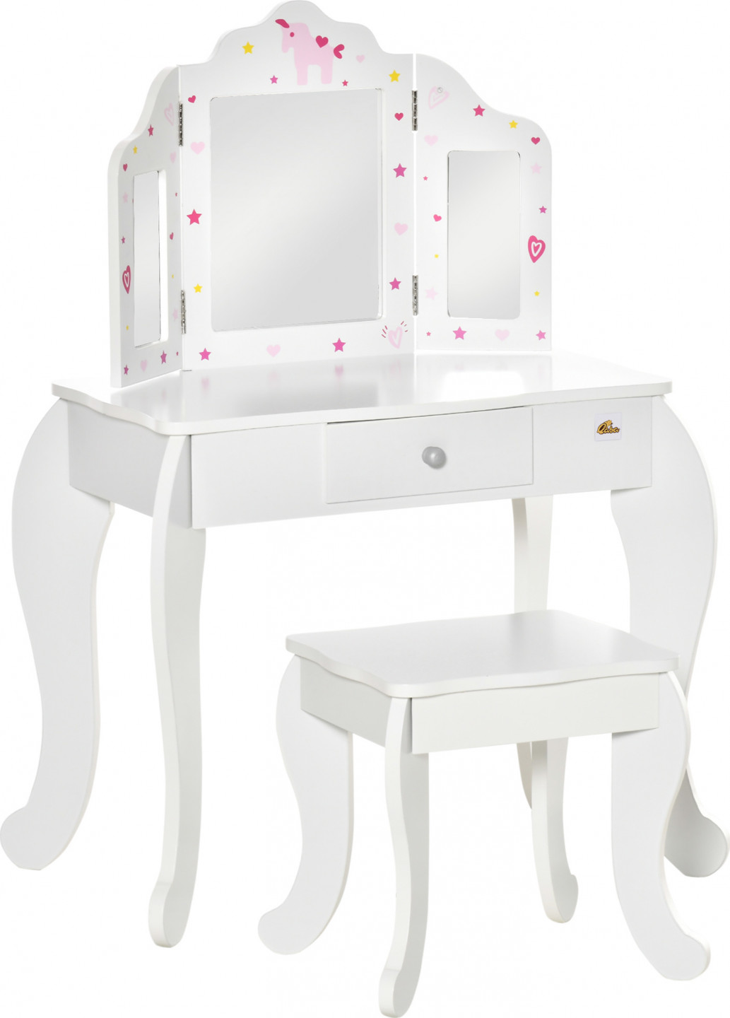 • 2dílná sada obsahuje toaletní stolek a odpovídající stoličku.