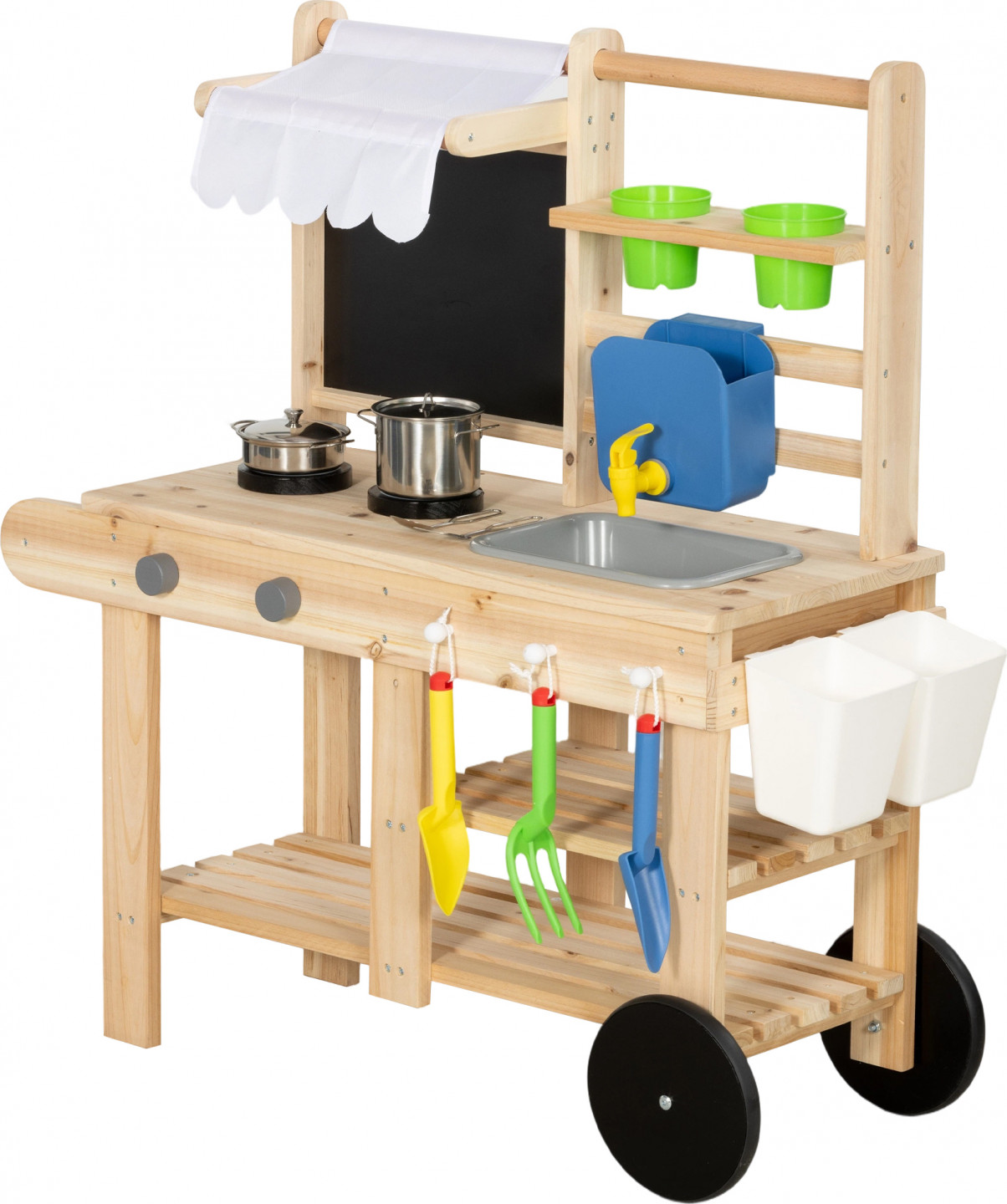 - Tato venkovní dětská kuchyňka inspiruje k zahradničení s kbelíky a nářadím, ideální pro každou venkovní dětskou bahenní kuchyňku