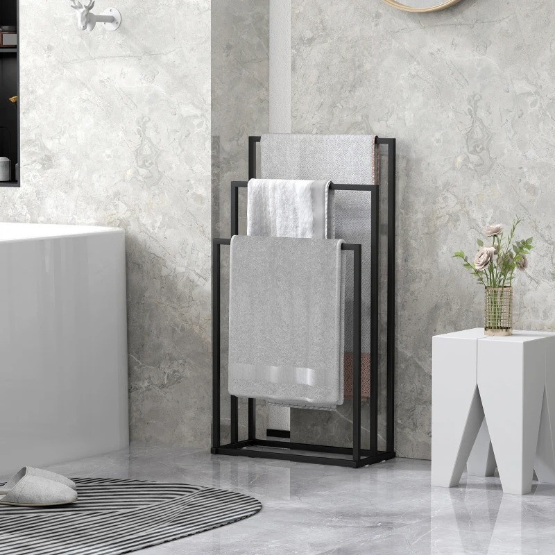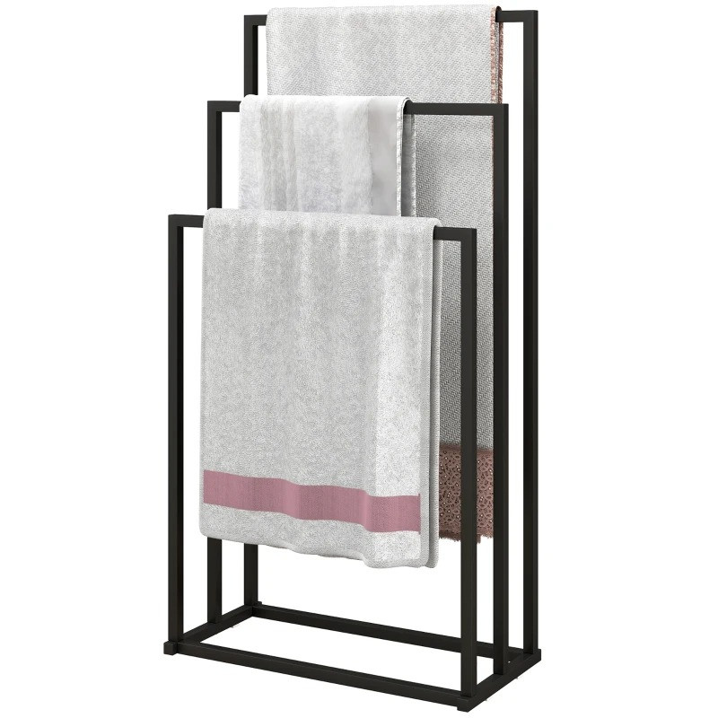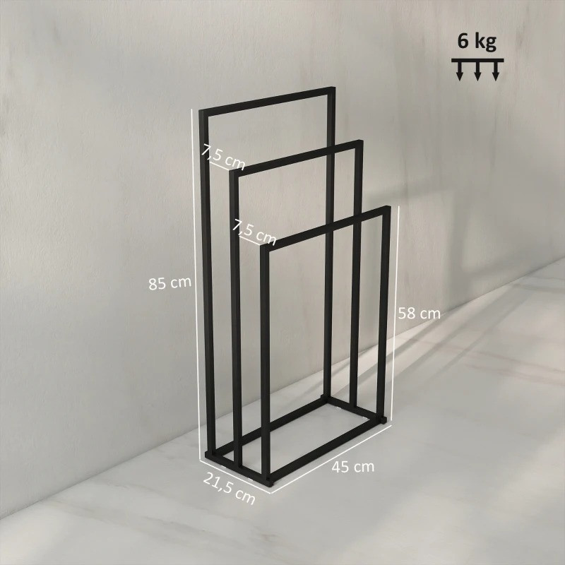 Stojanový držák na ručníky se 3 tyčemi, 45 x 21,5 x 85 cm | černý