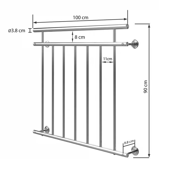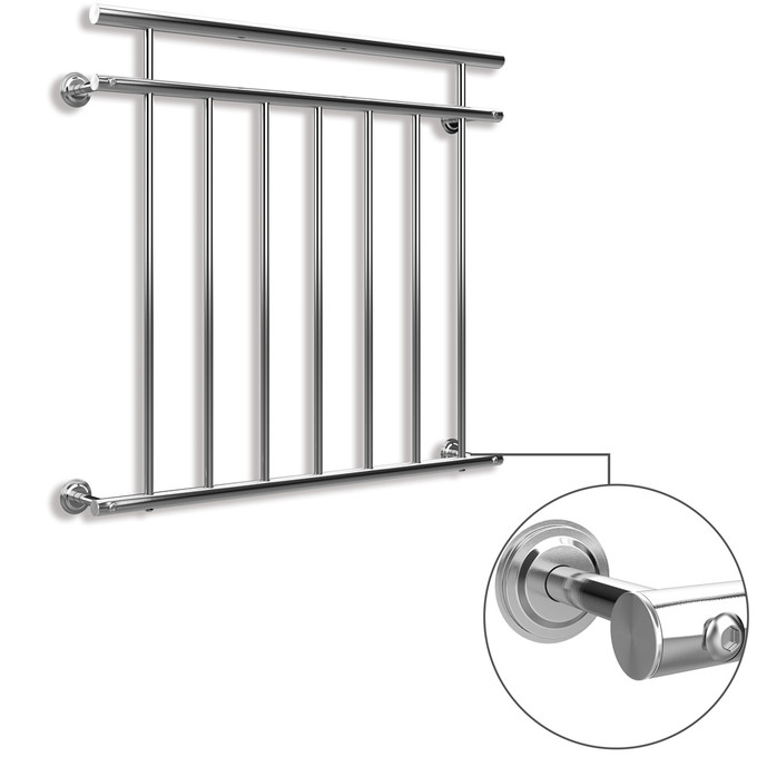 Elegantní zábradlí z nerezové oceli nejen opticky , ale také opticky zvyšuje bezpečnost. Pokud ve vašem domě žijí děti, starší lidé nebo domácí mazlíčci, může jim zábradlí poskytnout ochranu .Francouzské balkonové zábradlí je k dispozici v 5 velikostech, takže si můžete vybrat vhodné zábradlí pro vaše okno. Madlo a konce trubek jsou utěsněny; počet výplňových tyčí se liší v závislosti na velikosti. Tyče jsou od sebe roztečovány 11 cm.