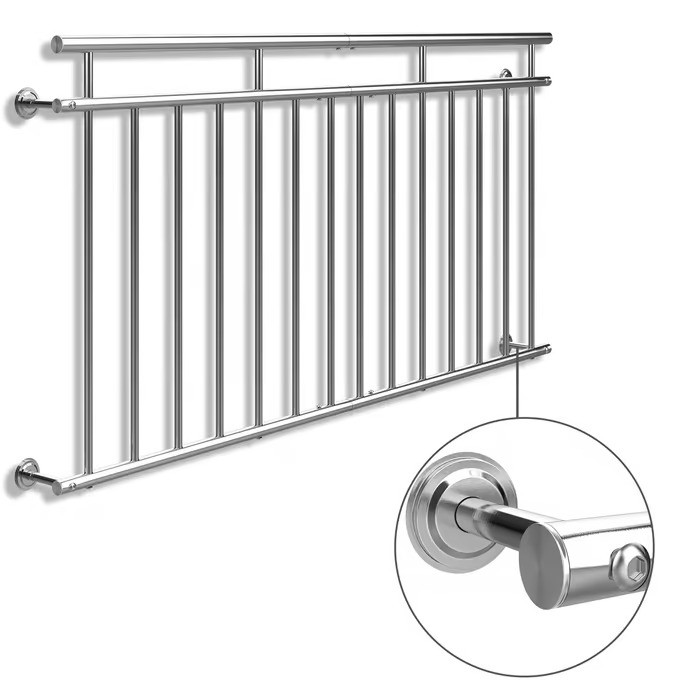 Toto elegantní francouzské zábradlí z nerezové oceli je skvělou volbou pro zvýšení bezpečnosti a estetiky vašich balkonů, teras nebo schodišť. S moderním designem a vysokou odolností je ideální pro exteriéry i interiéry, kde chcete spojit funkčnost s nadčasovým vzhledem.