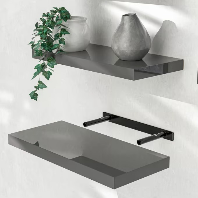 Vysoce kvalitní nástěnná police v moderním designu - elegantní poutač pro váš domov! Součástí dodávky je nástěnný držák, který se zcela zabuduje do základny police a vytváří tak iluzi, že se police vznáší na zdi. Ať už je instalace vodorovná nebo svislá, instalace je rychlá a snadná.