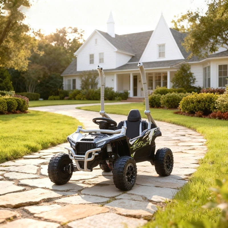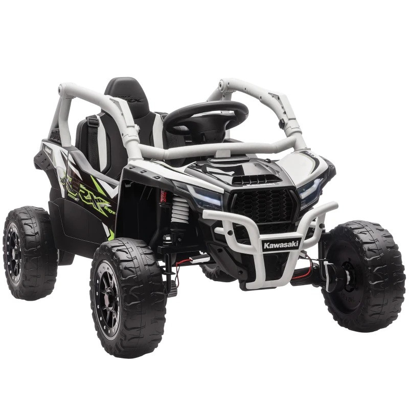 Toto elektrické Kawasaki Teryx KRX 1000 pro děti v sobě spojuje zábavu, dobrodružství a bezpečnost. Díky realistickému designu a duálnímu pohonu umožňuje jízdu pod rodičovskou kontrolou. Jeho robustní podvozek, zadní odpružení a hudební funkce zaručují hodiny venkovního zkoumání a zábavy pro děti ve věku od 3 do 5 let.