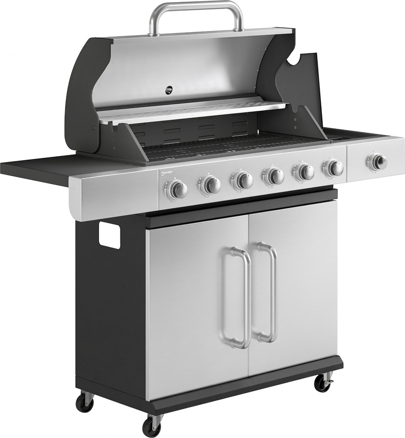 • Tento plynový gril s šesti hlavními hořáky a bočním hořákem o výkonu 18,6 kW je ideální pro velké grilovací party.