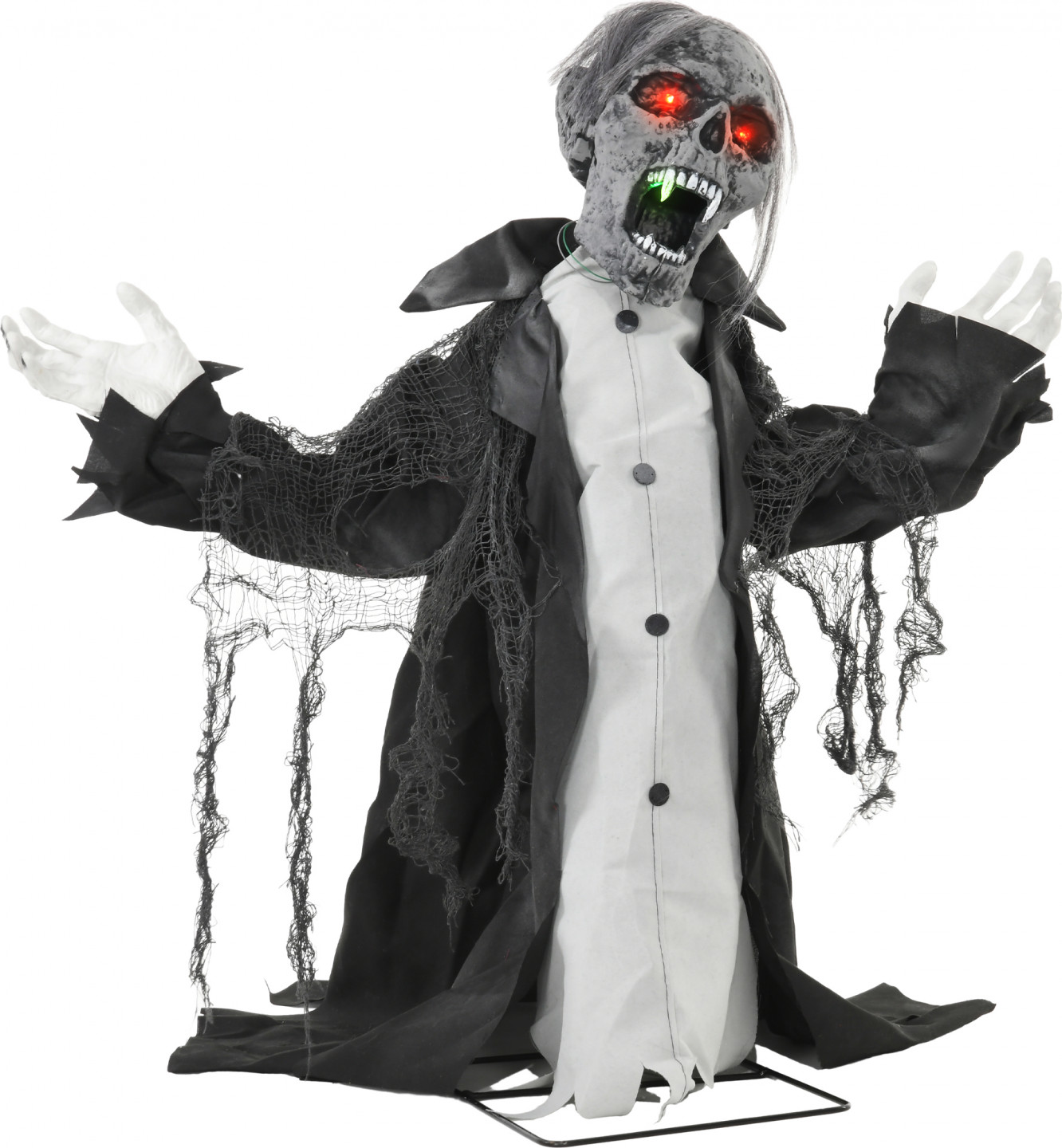Dodejte své halloweenské párty nezapomenutelný nádech strachu s animovanou halloweenskou dekorací! Tato kostra zombie přináší hrůzostrašné okamžiky strachu, protože se zdá, že se ruce halloweenské dekorace volně pohybují. Aktivuje se dotykem nebo zvukem, otáčí hlavou a jeho jasně červené oči a zelená ústa děsivě svítí. Díky strašidelným zvukům se okamžitě stane atrakcí na vaší zahradě nebo na každé halloweenské párty!