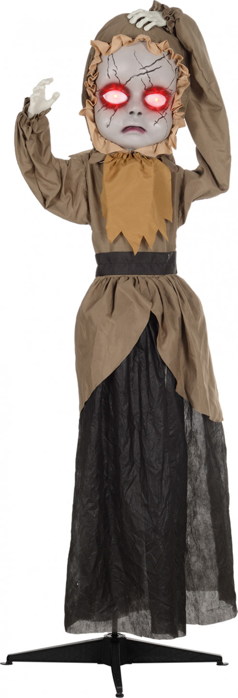 Zažijte nečekané okamžiky strachu s touto animovanou halloweenskou rekvizitou. Aktivuje se dotykem nebo zvukem a upoutá kolemjdoucí skutečnou halloweenskou atmosférou. Design mrtvé panenky s vyskakovací hlavou, červeně svítícíma očima a strašidelným zvukem je napájen 3 x AA bateriemi a lze jej umístit kamkoli.