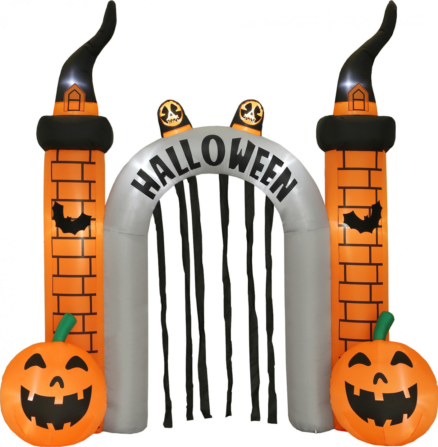 Obtížné a vratké halloweenské dekorace jsou minulostí. S tímto nafukovacím obloukem Halloween proměníte svou zahradu během okamžiku. Halloweenská zahradní dekorace se sama nafoukne a vytvoří strašidelný, svítící vchod díky 10 integrovaným LED diodám. Díky dodávaným kolíkům, lanům a pytlům s pískem je vaše působivá venkovní halloweenská dekorace stabilní a vytváří bezstarostnou a slavnostní atmosféru.