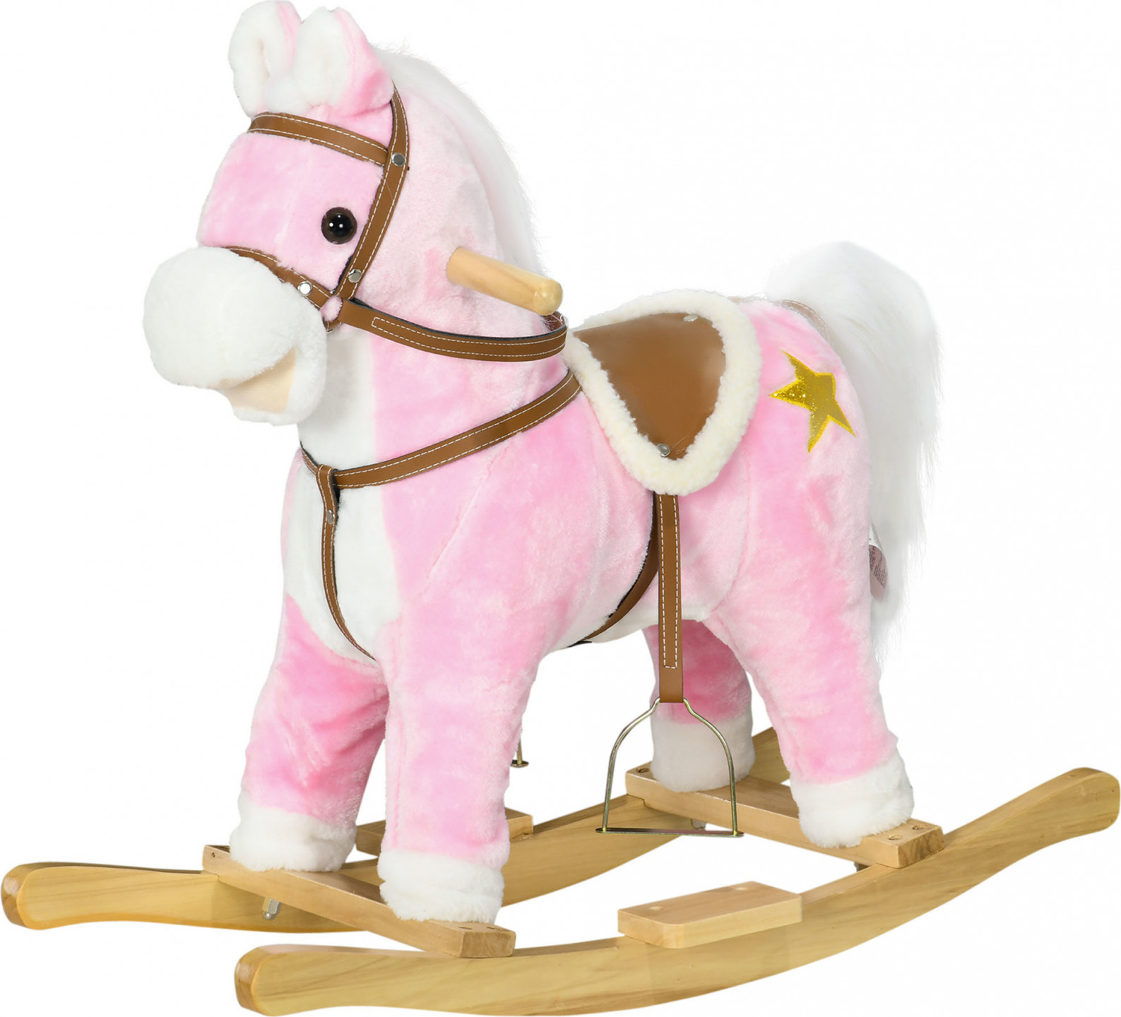 Jste připraveni na jezdecké dobrodružství? Tento dětský houpací kůň vydává zvuky úderů kopyt a ržání koní, zatímco hraje kovbojská písnička a ocas se houpe v rytmu hudby. Díky měkkému plyšovému tělu, odnímatelnému sedlu a pohodlným třmenům nabízí tento houpací kůň pohodlí i skvělou zábavu. Robustní kovový rám a robustní dřevěná základna zajišťují odolnost a zaručují, že váš malý poklad zůstane vždy bezpečně v sedle.