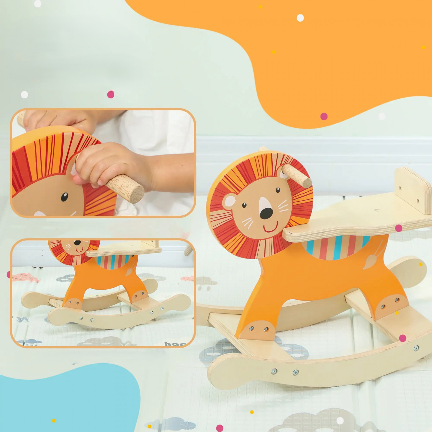 Rozveselte svůj dětský pokoj nebo zahradu s tímto roztomilým houpacím zvířátkem ve tvaru lva! Houpadlo je vyrobeno z odolného a bezpečného materiálu, který zajišťuje stabilitu a pohodlnou jízdu pro děti. Jasná oranžová barva a přátelský vzhled lva přitahují pozornost a podporují fantazii při hře.