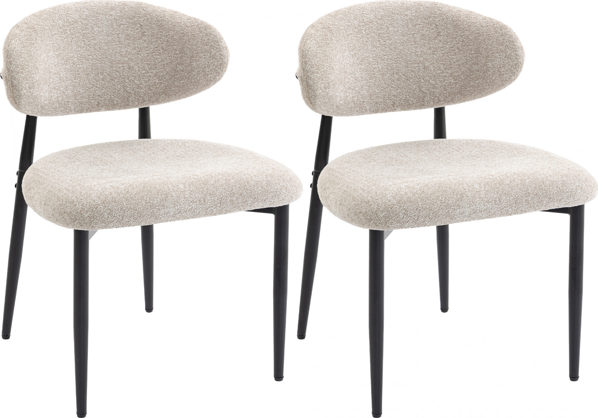 - Tato moderní jídelní židle má béžové čalounění a černý rám, což z těchto židlí činí univerzální stylovou volbu