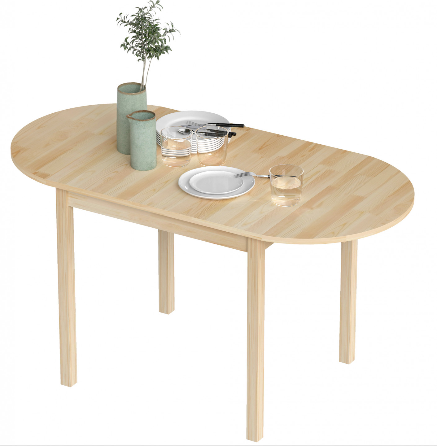 - Kuchyňský stůl s rozkládacím listem umožňuje tři varianty uspořádání: bez levé strany, s jedním listem nebo se dvěma listy: pro 4-6 osob.