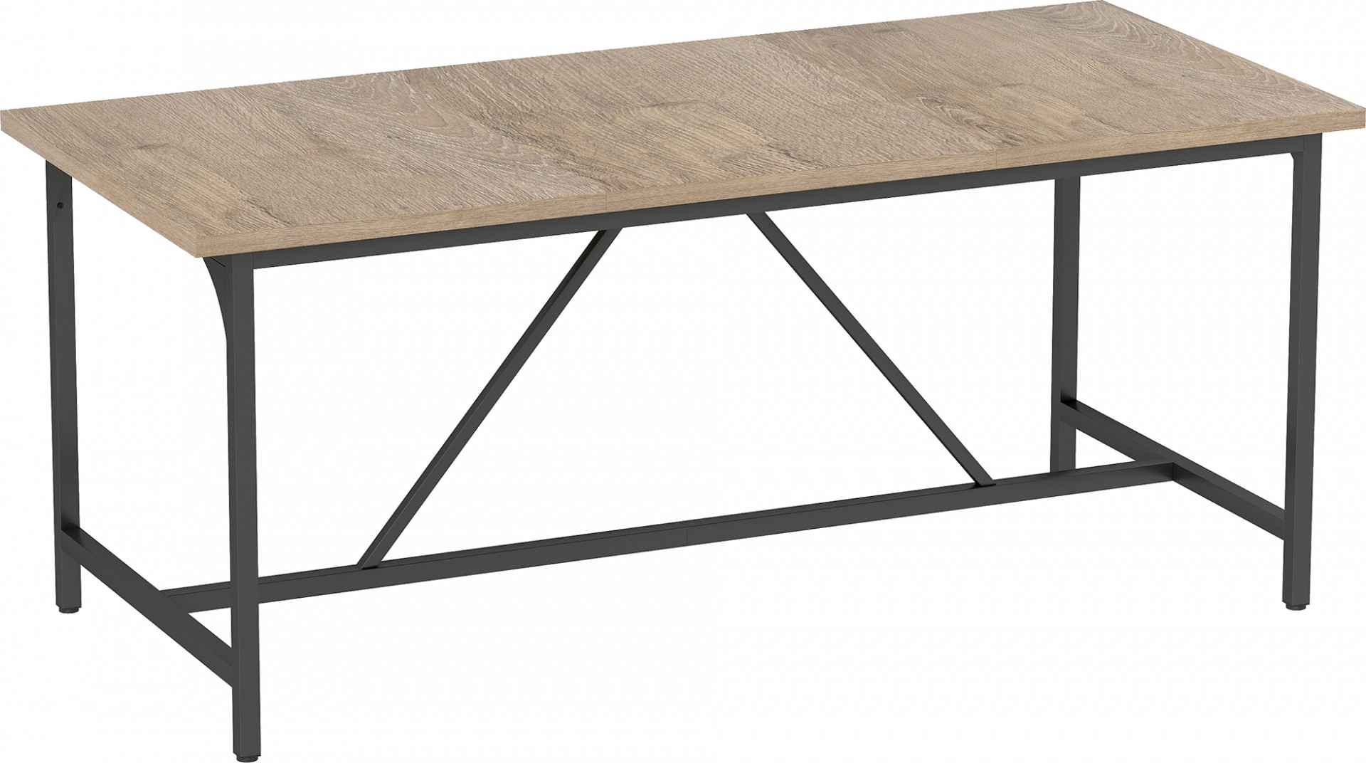 Objevte náš industriální jídelní stůl s velkou plochou 180 x 80 cm, ideální pro 6 až 8 osob. Deska stolu o tloušťce 3 cm, V-výstuhy, výškově nastavitelné nohy pro optimální stabilitu. Dřevěný vzhled a černý rám, ideální pro modernizaci vašeho stolování s rodinou nebo přáteli.