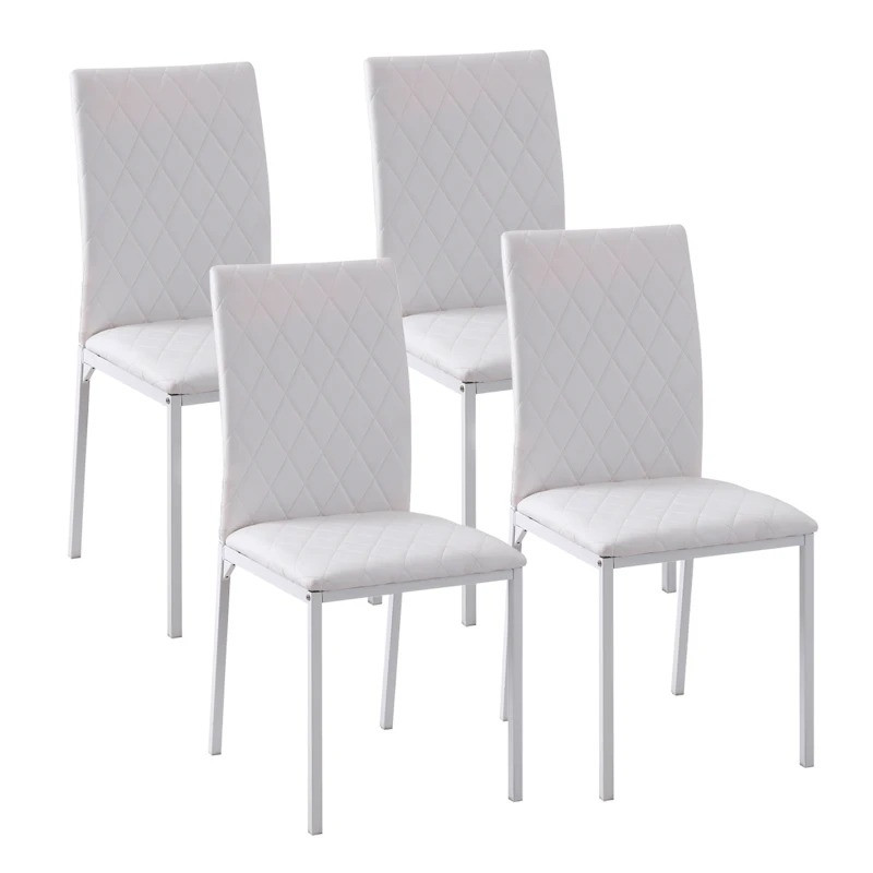 Vytvořte prostor pro každého hosta díky sadě kuchyňských židlí, která se skládá ze 4 moderních židlí. Vysoké opěradlo čalouněné židle poskytuje optimální oporu a čalouněný sedák s potahem z imitace kůže zajišťuje maximální pohodlí. Díky kovovému rámu jsou jídelní židle robustní a vhodné pro každodenní použití. Jsou vybaveny chrániči podlahy, které zabraňují poškrábání.