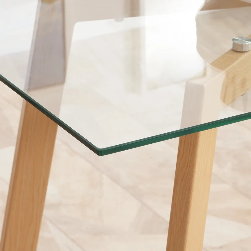 Ideální pro společné stolování nebo zábavné hry: Moderní jídelní stůl s ocelovým rámem a deskou z tvrzeného skla se skvěle hodí do každé domácnosti. Jeho průhledný vzhled a nohy jídelního stolu v dřevěném provedení dodají vaší domácnosti eleganci a moderní nádech. Vhodný až pro 4 osoby.