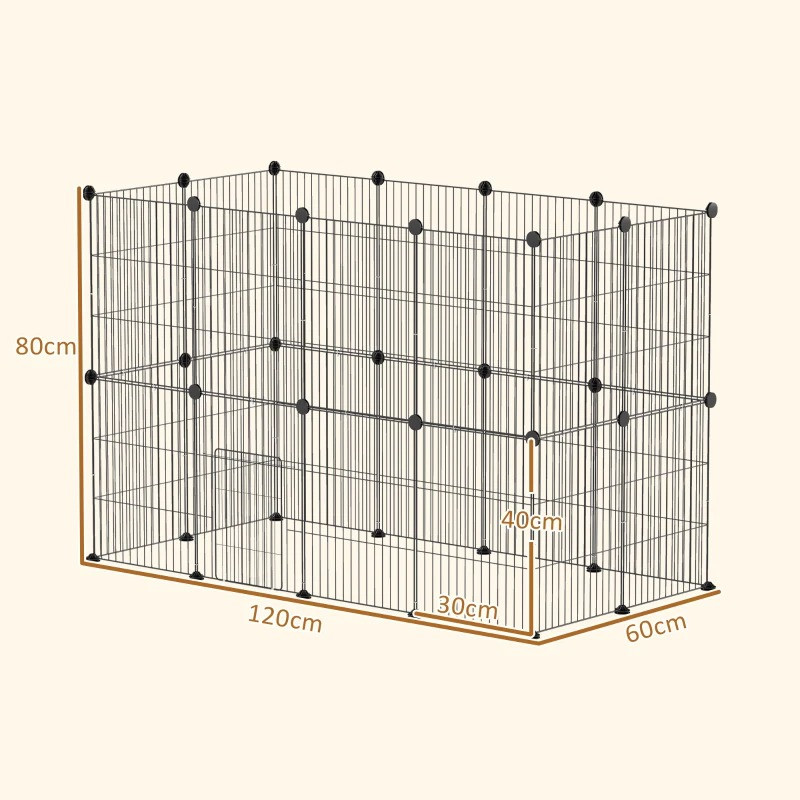 Objevte radost z prostorného a bezpečného domova pro své malé kamarády s tímto modulárním výběhem pro morčata. Tento výběh pro malá zvířata nabízí 24 vzájemně propojených síťových panelů včetně praktických dvířek, které vytvářejí velkorysou hrací plochu o rozloze 0,72 m² s bezpečnou vzdáleností 1,5 cm mezi mřížemi. Ideální klec pro hlodavce, morčata a zakrslé králíky, můžete ji také postavit na sebe a vytvořit tak útulné dvoupatrové útočiště.