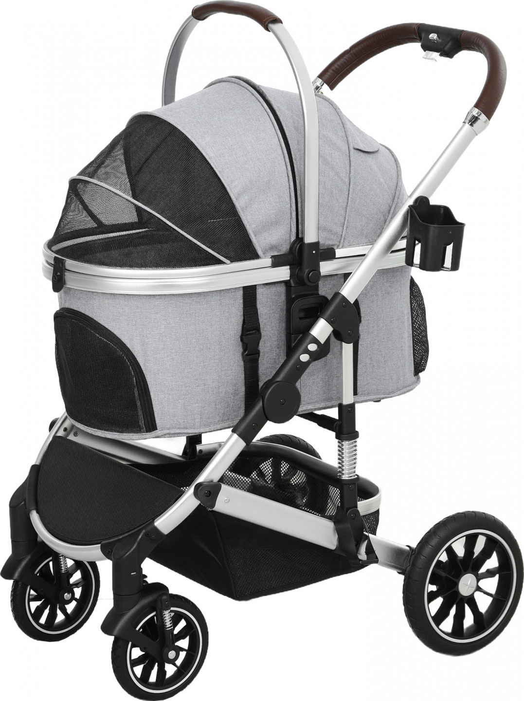 Skládací kočárek pro psy do 10 kg 3v1 | světle šedý