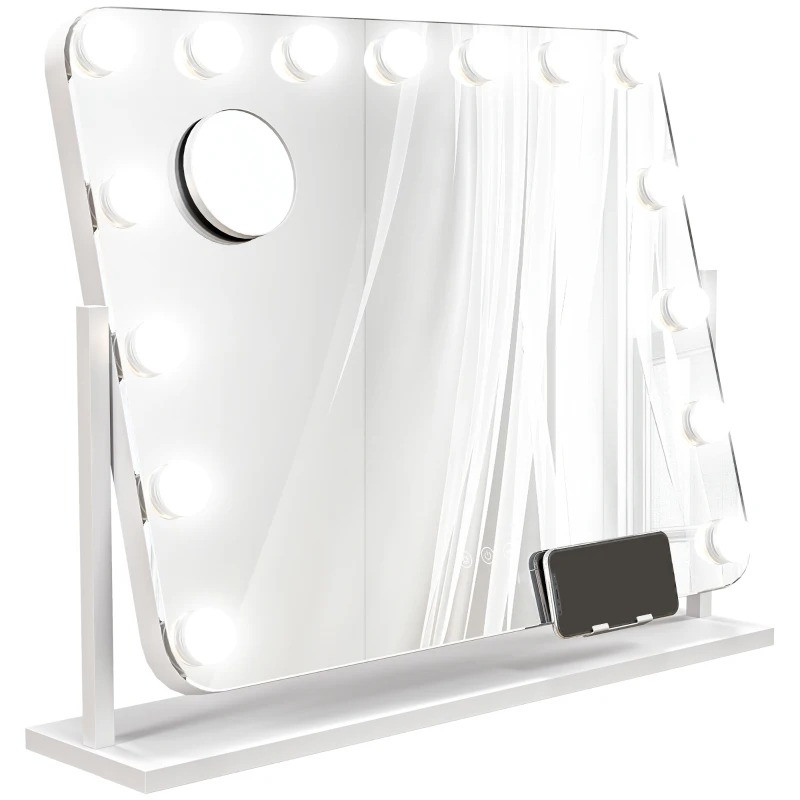 Zažijte kouzlo profesionálního líčení s tímto hollywoodským zrcadlem s osvětlením v bílé barvě, které přináší glamour a eleganci přímo do vašeho domova. Ideální pro každou milovnici krásy, kosmetiku, nebo pro profesionály, kteří potřebují kvalitní osvětlení pro precizní práci. LED osvětlení kolem zrcadla simuluje přirozené denní světlo, což vám umožní dosáhnout dokonalého líčení i v nočních hodinách nebo při špatných světelných podmínkách. Bílý rám zrcadla v kombinaci s jemným osvětlením dodává interiéru moderní a luxusní vzhled.