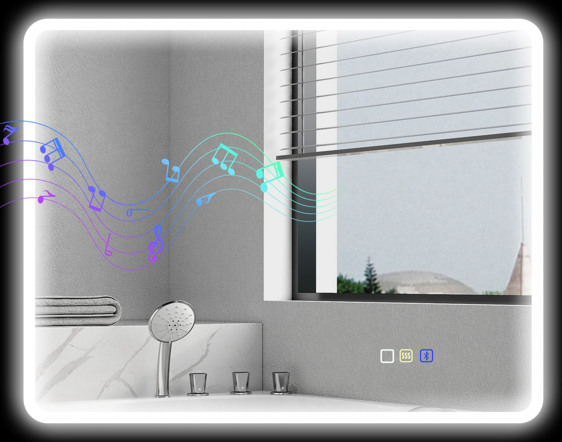 - Koupelnové zrcadlo s Bluetooth oživí vaše ráno oblíbenou hudbou.