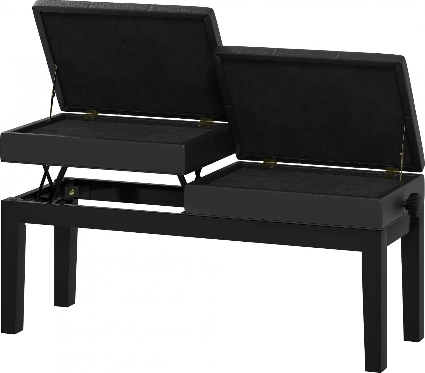 Zlepšete své hudební cvičení s klavírní lavicí. Zažijte maximální pohodlí díky voděodolné imitaci kůže a dvojitým čalouněným sedákům, které lze sklopit a nabízejí dostatek úložného prostoru. Nastavte si výšku od 48 cm do 58 cm a najděte si ideální sedadlo - nezbytnost pro každého hudebníka. S klavírní lavicí můžete svou hru na klavír posunout na vyšší úroveň.