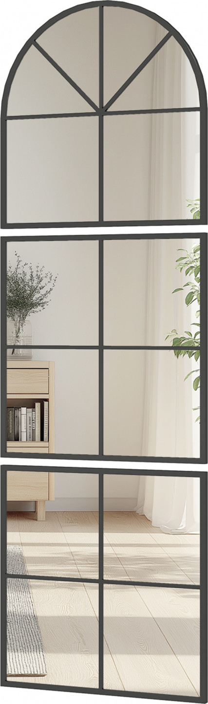 Vylepšete svůj domov stylově pomocí nástěnného zrcadla. Toto zrcadlo s atraktivním obloukem v horní části a designem okna od podlahy ke stropu v elegantní černé barvě snadno vylepší každou místnost, ať už jde o obývací pokoj nebo chodbu. Toto dělené provedení zrcadla do předsíně umožňuje flexibilní umístění a vnese do každého koutu nádech sofistikovanosti. Součástí balení je také předlisovaný háček pro snadnou instalaci!