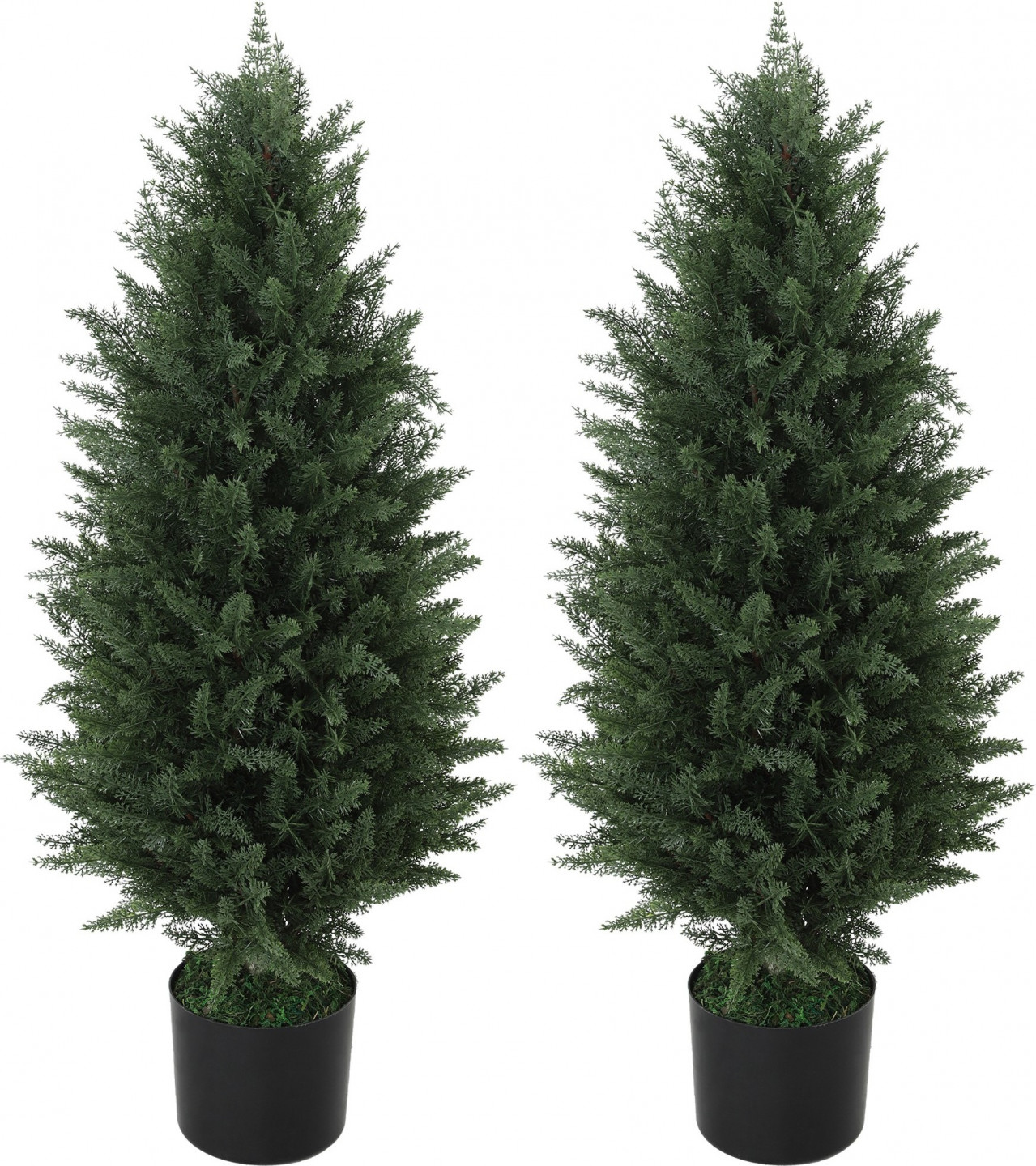 Dodejte svému pokoji trvalou zeleň pomocí našich umělých rostlin. Tyto klamně skutečné repliky cypřišů o výšce 90 cm jsou k dispozici v praktickém dvojitém balení. Pokojové rostliny s 831 plastovými listy v klasických pěstebních květináčích nevyžadují žádnou údržbu a jsou odolné vůči UV záření, ideální pro vnitřní i venkovní použití.