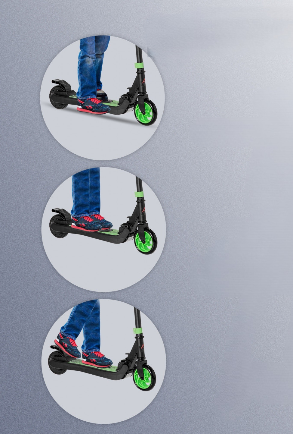 Zažijte stylovou jízdu a vzrušující outdoorové aktivity s elektrickou koloběžkou, kterou lze složit. Po 2-3 hodinách nabíjení dojede až 6 km a max. Rychlost 8 km/h. Robustní ocelový rám a vidlice zaručují bezpečnou jízdu i při intenzivním používání. Zadní kolo s funkcí brzdy zajišťuje rychlé zastavení a bezpečnou jízdu. Vydejte se na vzrušující dobrodružství a vytvořte si nezapomenutelné zážitky z dětství.