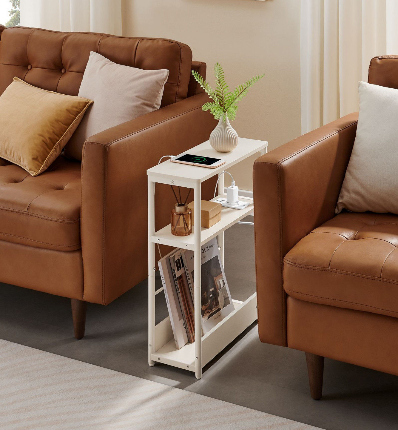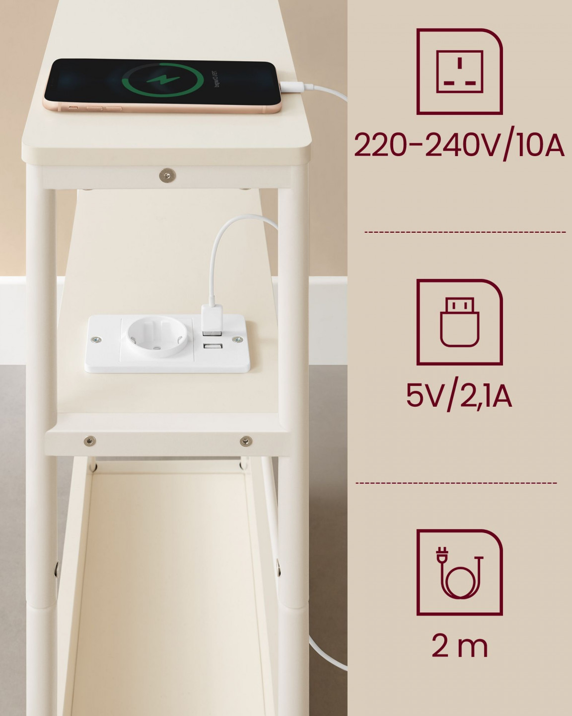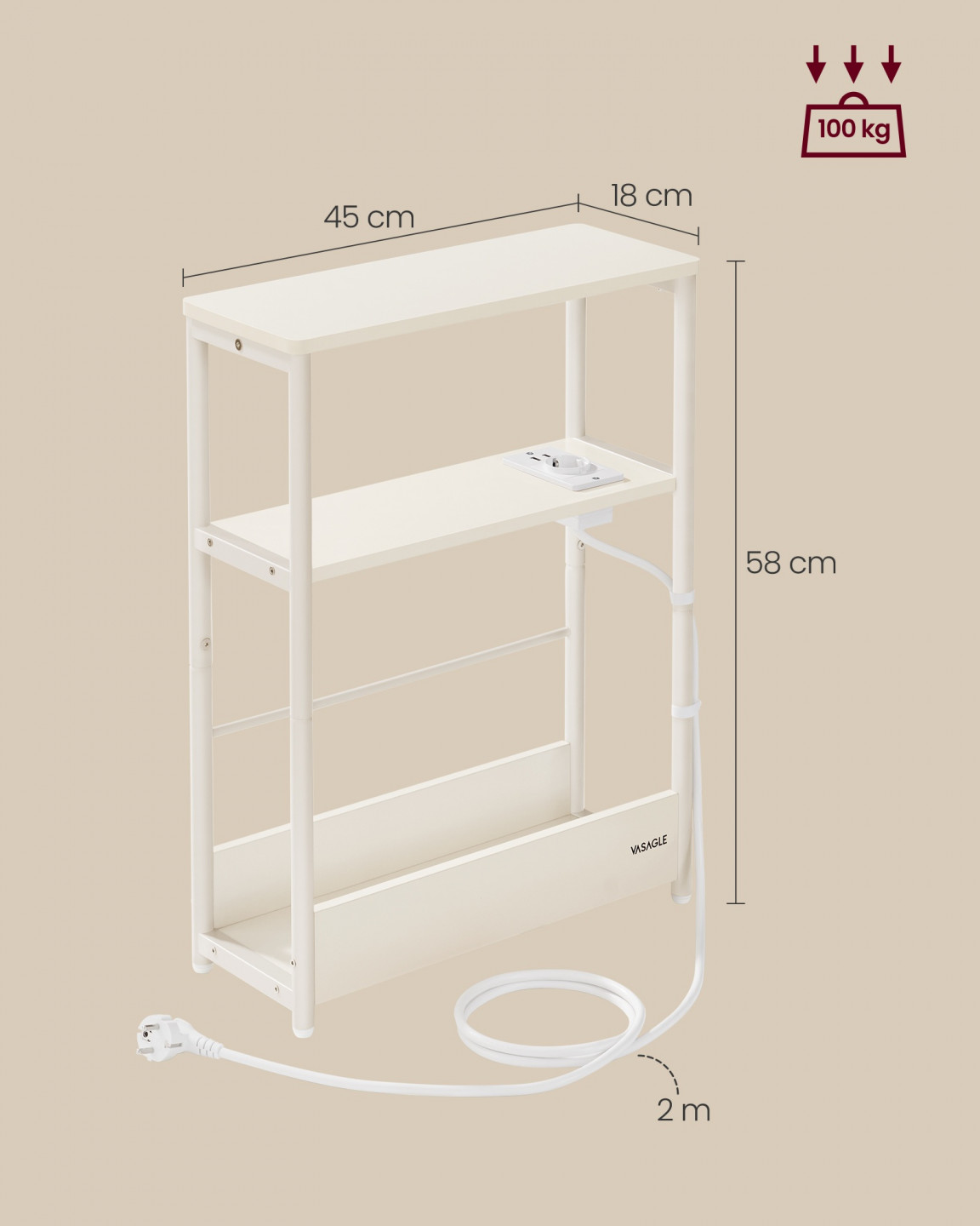 Obdélníkový stolek s policemi a zásuvkou 18 x 45 x 58 cm | bílá