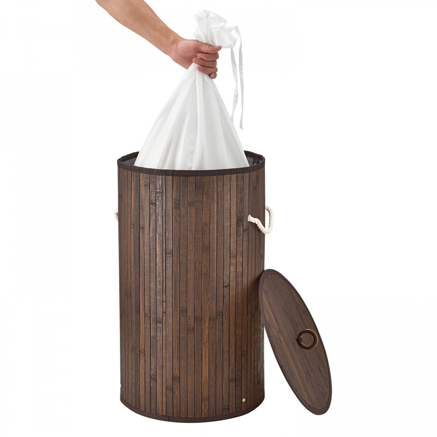 Bambusový okrúhly kôš na bielizeň s vekom 55 l | hnedý
