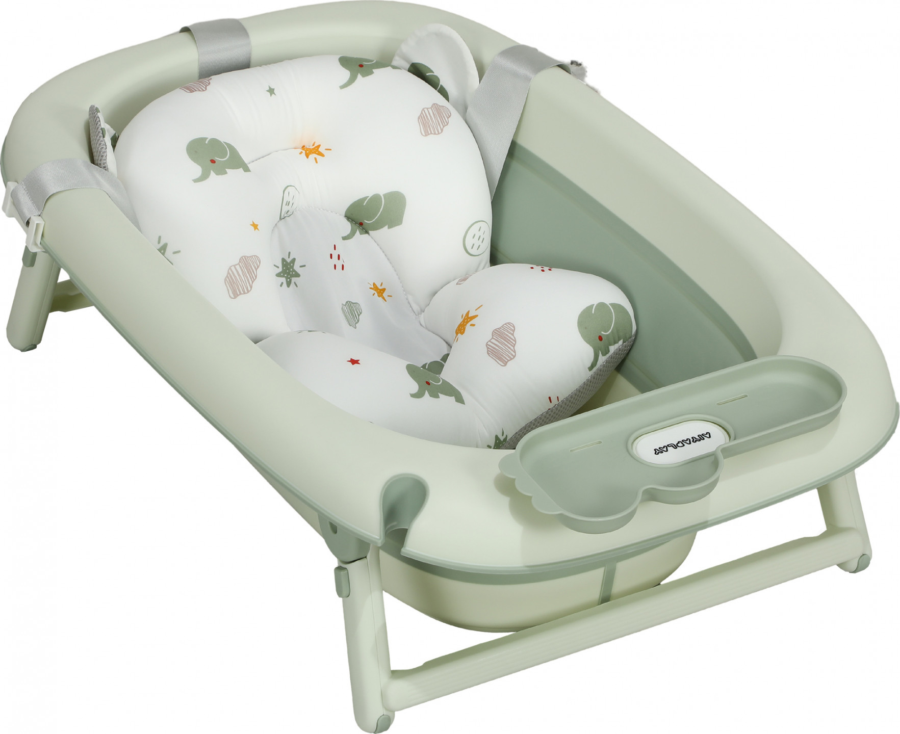 Se skládací dětskou vaničkou se čas koupání stane potěšením. Vanička je vybavena útulným polštářkem do vany s veselým vzorem slonů a díky stabilní základně, která se nepřevrací, a podpěrnému stojanu s knoflíky zaručuje vašemu dítěti bezpečí a pohodlí. Roztomilé kreslené poličky dětské vaničky zajišťují, že všechny potřeby na koupání jsou vždy po ruce! Vhodné pro miminka a batolata do 3 let.