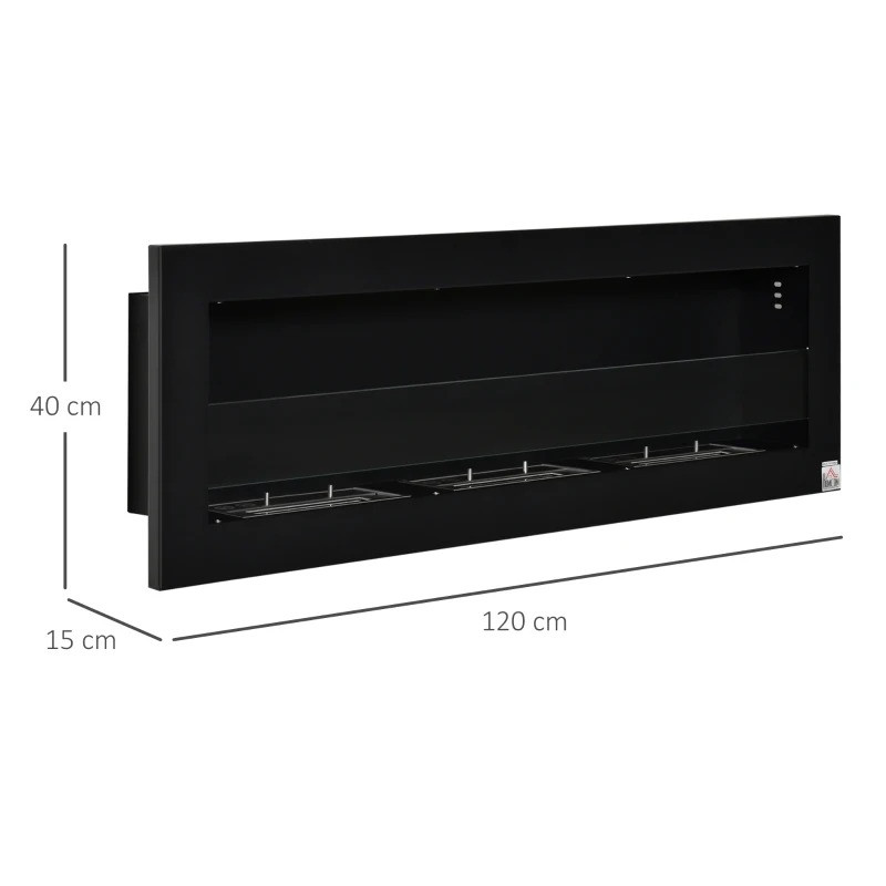 Bio etanolový krb se 3 hořáky, 120 x 15 x 40 cm | černý