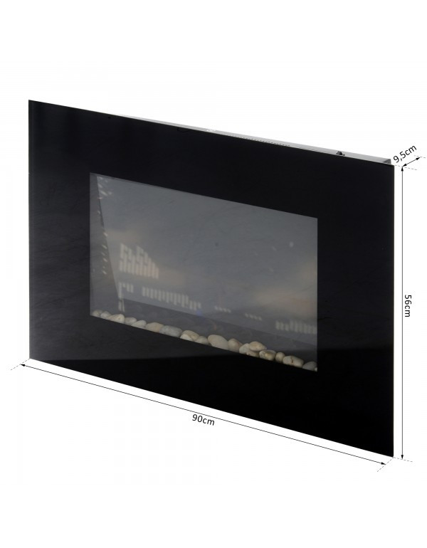 Nástenný elektrický krb s LED plameňmi 1000 / 2000W | čierny