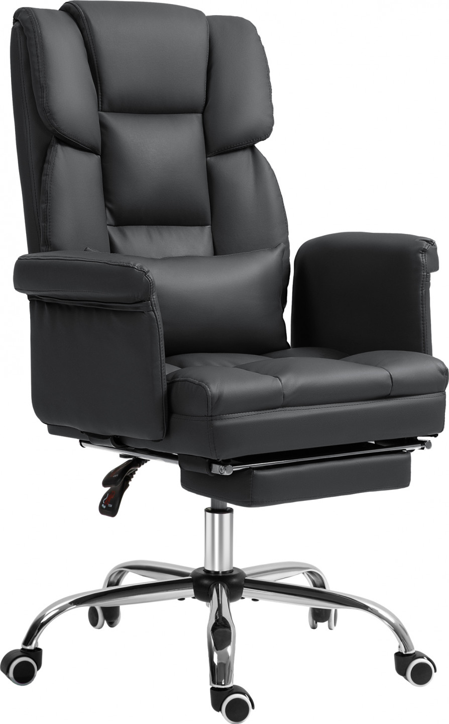 Vdechněte svému pracovišti nový život s kancelářskou židlí! Užijte si bezkonkurenční pohodlí díky nastavitelné výšce sedáku (48-56 cm) a polohovatelnému opěradlu (90-155°). Klouzejte bez námahy na kolečkách otočných o 360° a užívejte si výhod odnímatelného bederního polštáře a pohodlné opěrky nohou. Tato stylová kancelářská židle je ideální pro každou domácí kancelář a kombinuje funkčnost se snadno udržovatelnou povrchovou úpravou z umělé kůže.