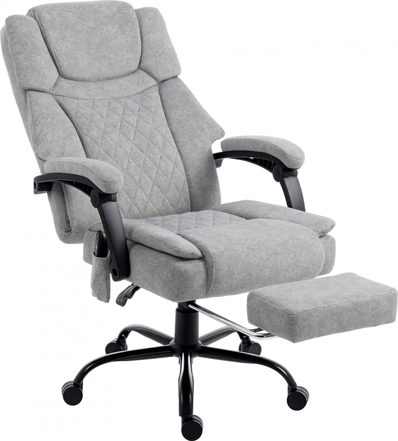 Bolest po dlouhém dni stráveném u pracovního stolu se šíří od dolní části zad až po napjatá ramena. Tyto přetrvávající potíže ztěžují relaxaci i po práci. Ergonomická kancelářská židle nabízí řešení. Zažijte šestibodovou vibrační masáž a uklidňující teplo v bederní oblasti. Nakloňte se až do úhlu 135 stupňů, vysuňte podnožku a proměňte tuto kancelářskou židli ve svou osobní oázu.
