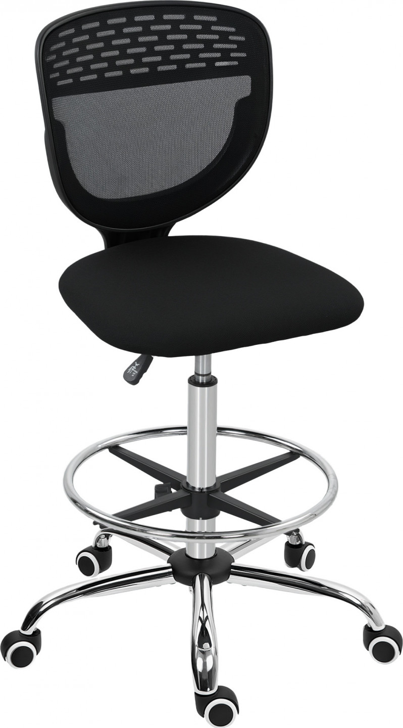Kancelářská židle je ideální pro vysoké pracovní stoly. Výšku sedáku lze nastavit v rozmezí 68-88 cm, abyste zajistili optimální polohu při sezení a předešli namáhání těla. Čalouněný sedák a vysoký opěrák poskytují pohodlí. Konstrukce bez područek a otočný sedák kancelářské židle zvyšují vaši volnost pohybu. Součástí je nastavitelná opěrka nohou.